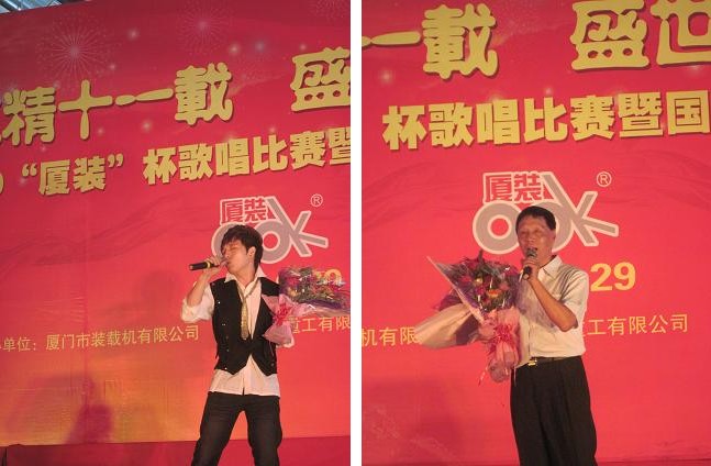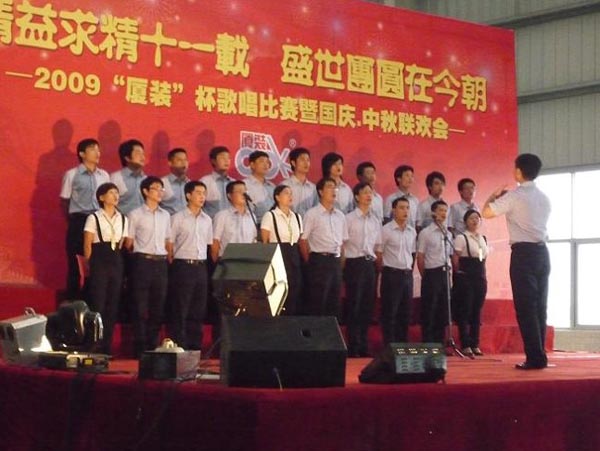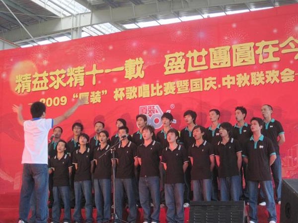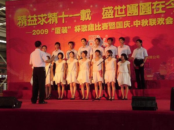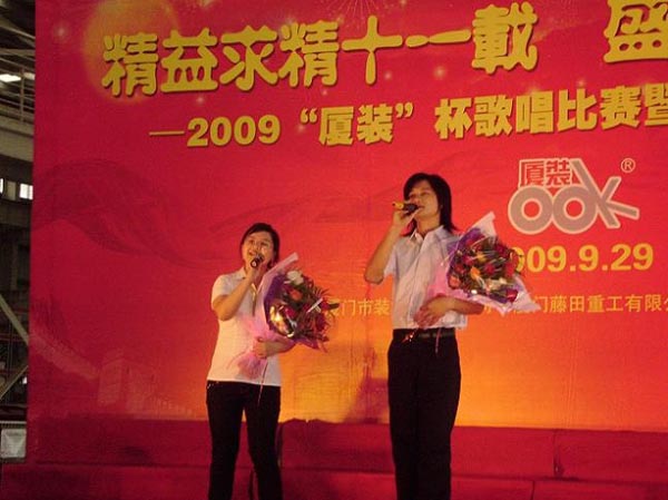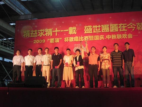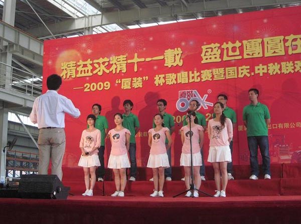 9月29日下午,2009年度“廈裝杯”歌唱比賽在廈裝公司總裝車間舉行。此次歌唱比賽以“精益求精十一載、盛世團(tuán)圓在今朝”為主題,賀祖國60周年華誕、喜迎中秋、慶祝廈裝成立11周年。公司及各部門從6月份開始籌備此次比賽,此次比賽分為集體組和個人組,集體組(合唱)以部門為單位,最終有6支隊進(jìn)入當(dāng)天的決賽,個人組通過先前的部門推薦及預(yù)賽選拔,最終有11人闖入決賽。